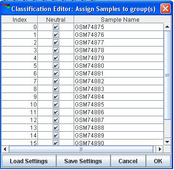 The same also is true for large sample size but the user is strongly recommended not to exceed more than 2 or 3 groups. The samples classification can be saved and loaded in to a file. See the label file as described(here).that the user is presented with a Classification Dialog where samples can be assigned to group of users’ choice. The sample classification dialog shows up once the user navigates from the main dialog by hitting OK. If number of classes is chosen as one the classification dialog is not shown. A node by the name of “CLASS” shows up in the network which captures the effect of sample groups on the network. Once the network is displayed the “CLASS” node behaves and can be treated as any other node in the network. The CLASS node has no annotation.