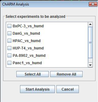 2. A new window opens which displays all CGH experiments that are loaded. Use the check boxes to select the experiments that needs to be analyzed and hit “Start Analysis”