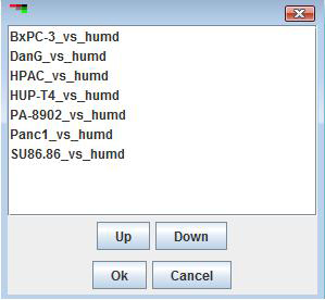 The order in which experiment appear in the display can be changed by using the item in the menu. The position of samples can be moved up and down using the buttons on the bottom of this dialog, and selecting will cause the experiments to be displayed using the new order.