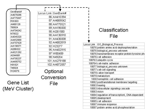 | Convert | Contains files linking indices (e.g. GenBank#-->Locus Link ID) These files are optional and are not needed if the annotation indices for each gene are the same as the keys in the Classification File (below). |
