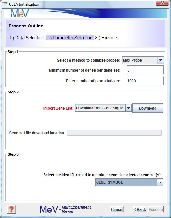 This brings you to the “Parameter Selection” section shown in Figure 4. The GUI is pretty self explanatory, but here is some better clarification about the available methods for collapsing probes to genes, loading gene sets and loading annotations.
