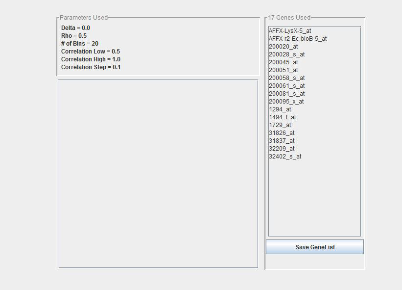 During Cross Validation, the USC algorithm has compiled a list of results. During each fold of cross validation, each experiment in the pseudo test set has been tested back against the remaining experiments of the pseudo training set. Here, you’ll be asked to choose between accuracy and the # of genes to use during testing. When the ‘Save Training Results’ checkbox is checked (default), you’ll be prompted to save the training file. If you have any Test experiments, they will be tested now using your chosen Delta Δ and Rho ρ values.