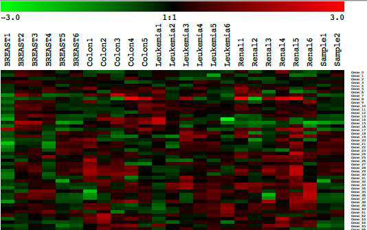 There is also a heat map visualization for each of the classes in the analysis, again, with the genes that were used during this classification.